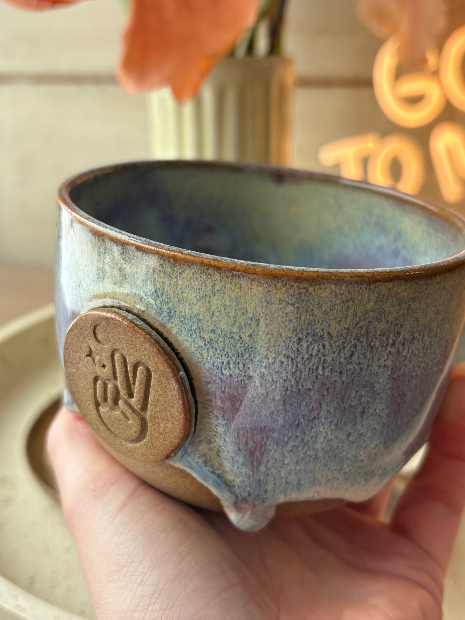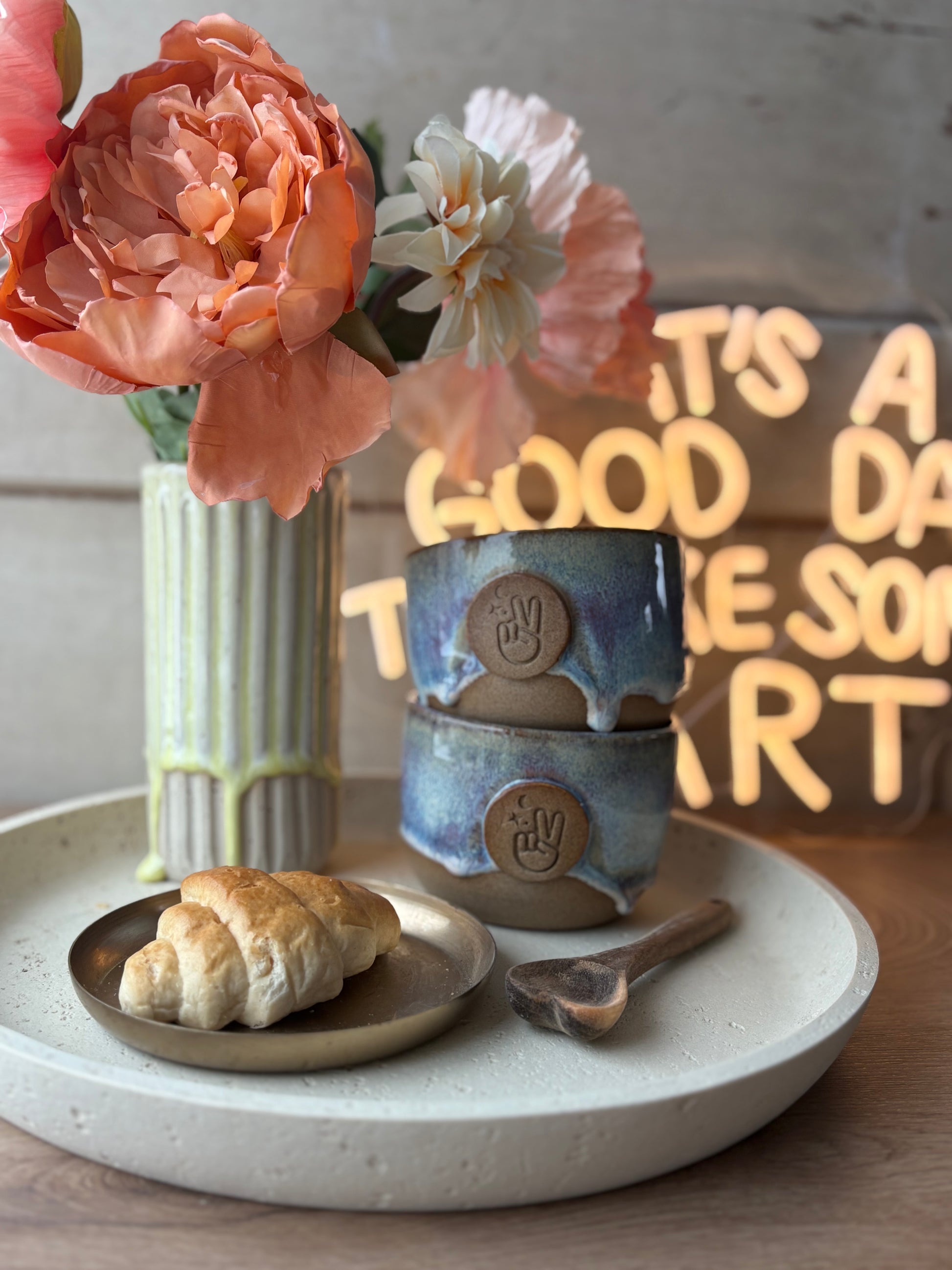 Gebrannt bei über 1200 °C aus hochwertigem Steinzeug ist der Becher robust und langlebig, trotz kleiner Unregelmäßigkeiten.