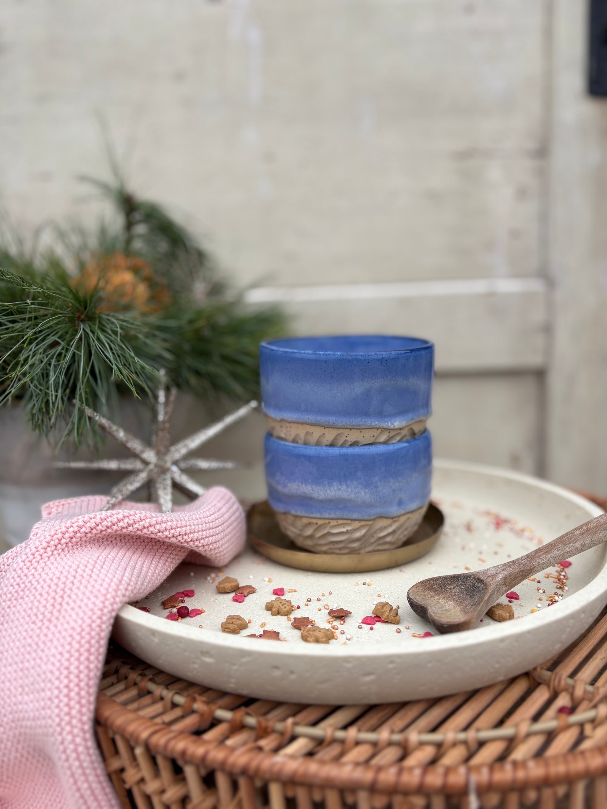 Dieser Coffee Cup wurde in liebevoller Handarbeit gefertigt und ist ein echtes Unikat. Die blaue Glasur verleiht ihm eine ruhige, klare Ausstrahlung und erinnert an Himmel und Meer – perfekt für entspannte Kaffeemomente und kleine Auszeiten im Alltag.