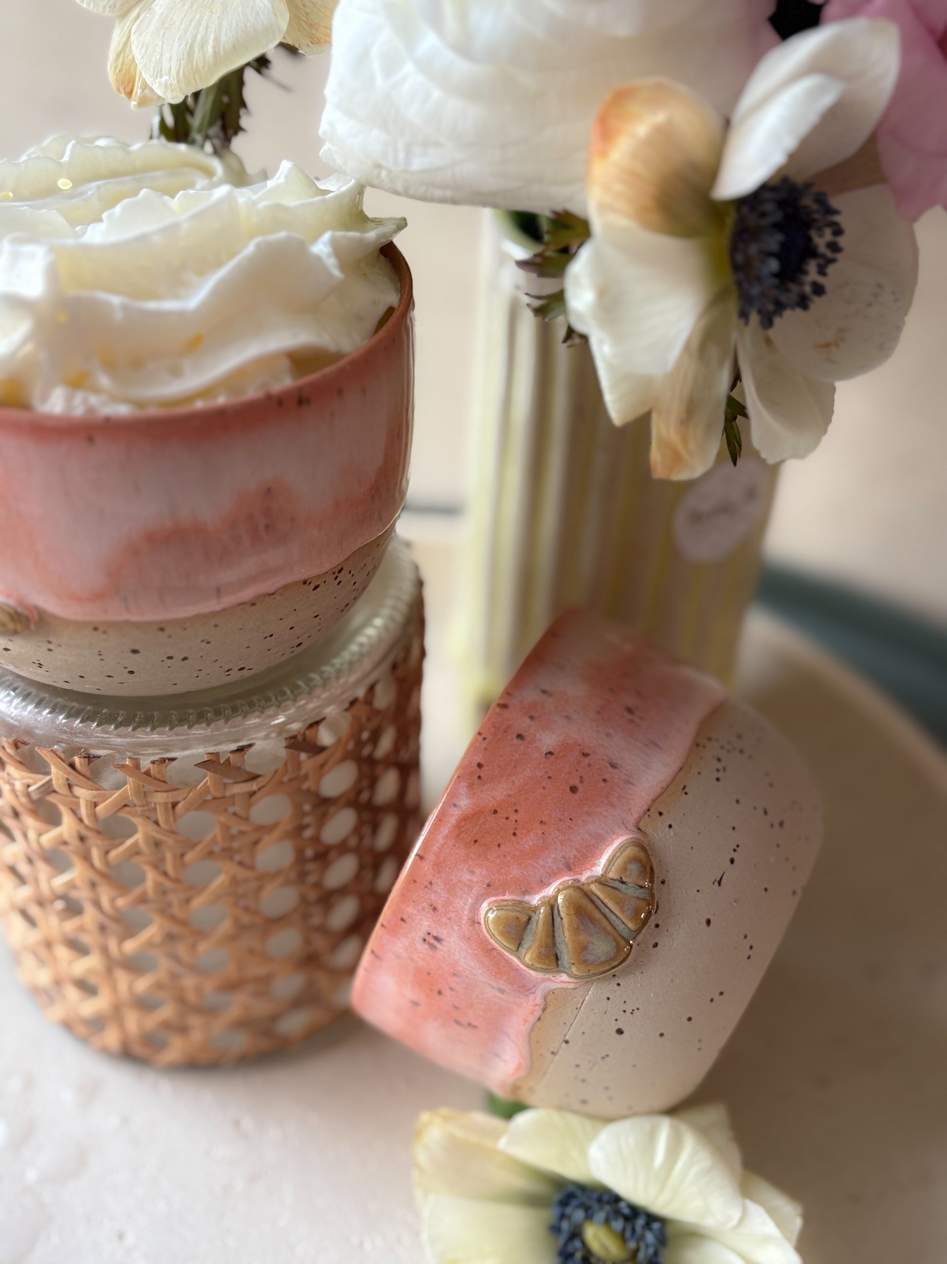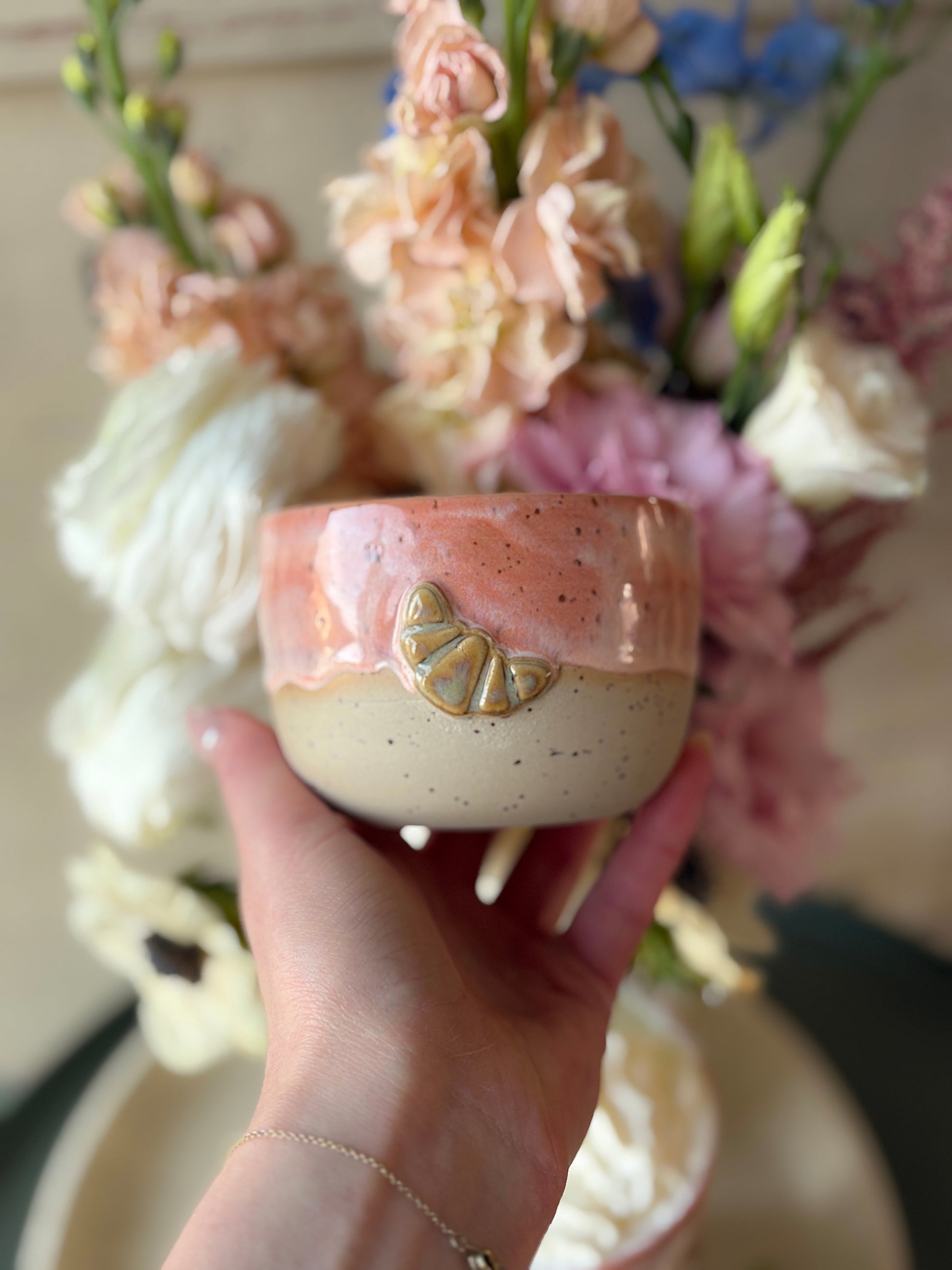 Dieser Cornettie Becher in einem warmen Orangeton wurde in sorgfältiger Handarbeit gefertigt – jedes Stück ist ein kleines Unikat mit besonderer Struktur und individueller Farbgebung.